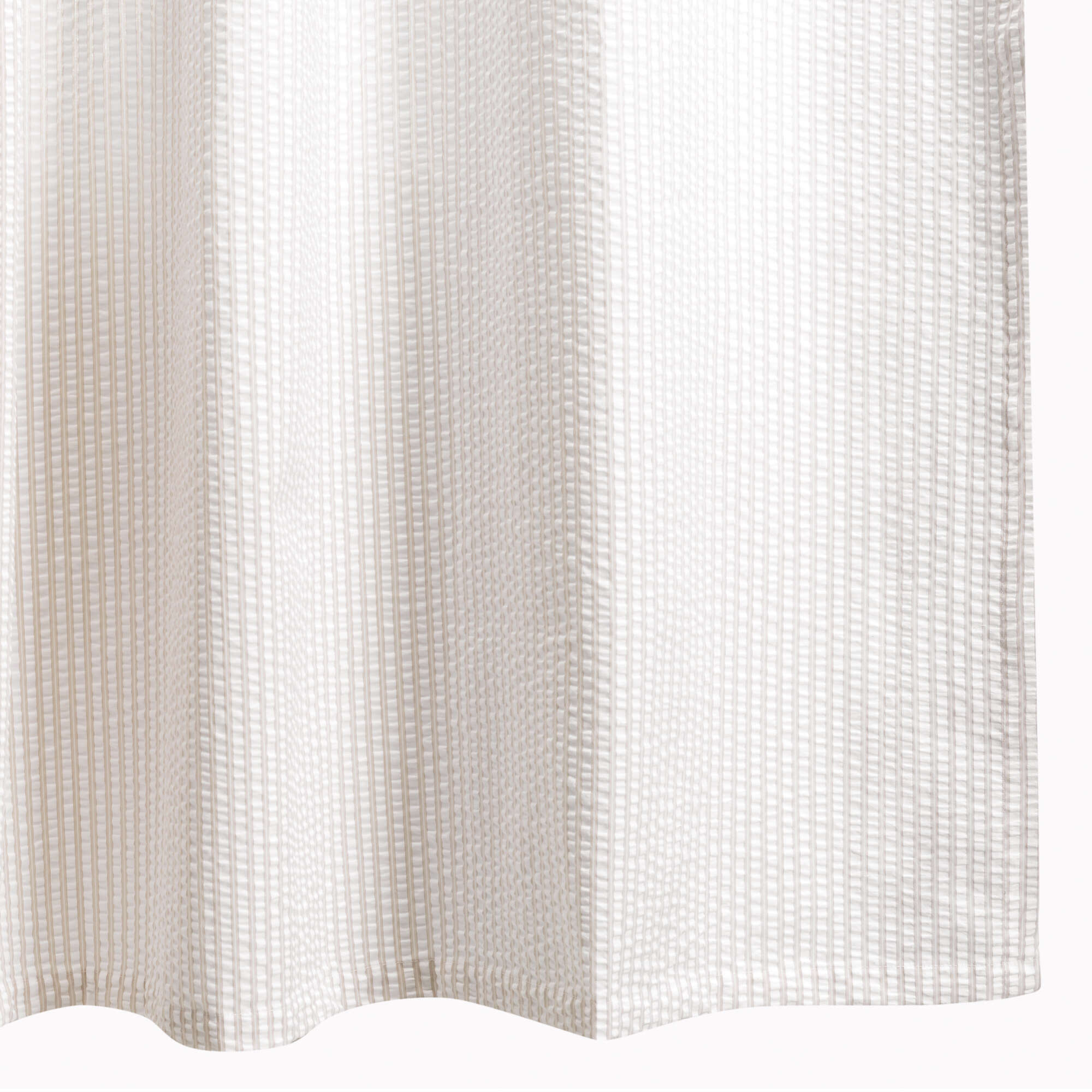 For bath style with the elegance of menswear, look no further than this seersucker shower curtain. Its neutral, two-toned stripe calls to mind classic shirting fabrics.