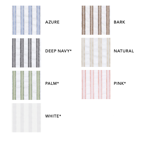 Matteo provides sophisticated top-of-bed options that evoke elegant menswear fabrics. Our interpretation is seersucker with a neutral, two-toned stripe and finished with a 1-inch flange. You'll love its dapper look as a duvet, shams, and a quilt with a 4-inch diamond stitch pattern.