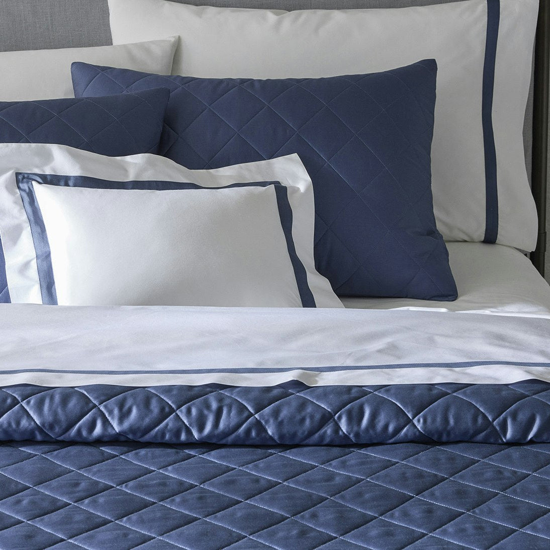 Inspired by our iconic Lowell bedding, Louise is a striking update that showcases two of our finest fabrics. Its base is our incredibly smooth and lightweight 500 thread count Bergamo Giza Egyptian cotton percale, with a tape appliqué made from our Talita sateen in seven sophisticated colors. A clean, corded knife edge completes the picture for this meticulously crafted style.*Contact us to order a custom color or monogram