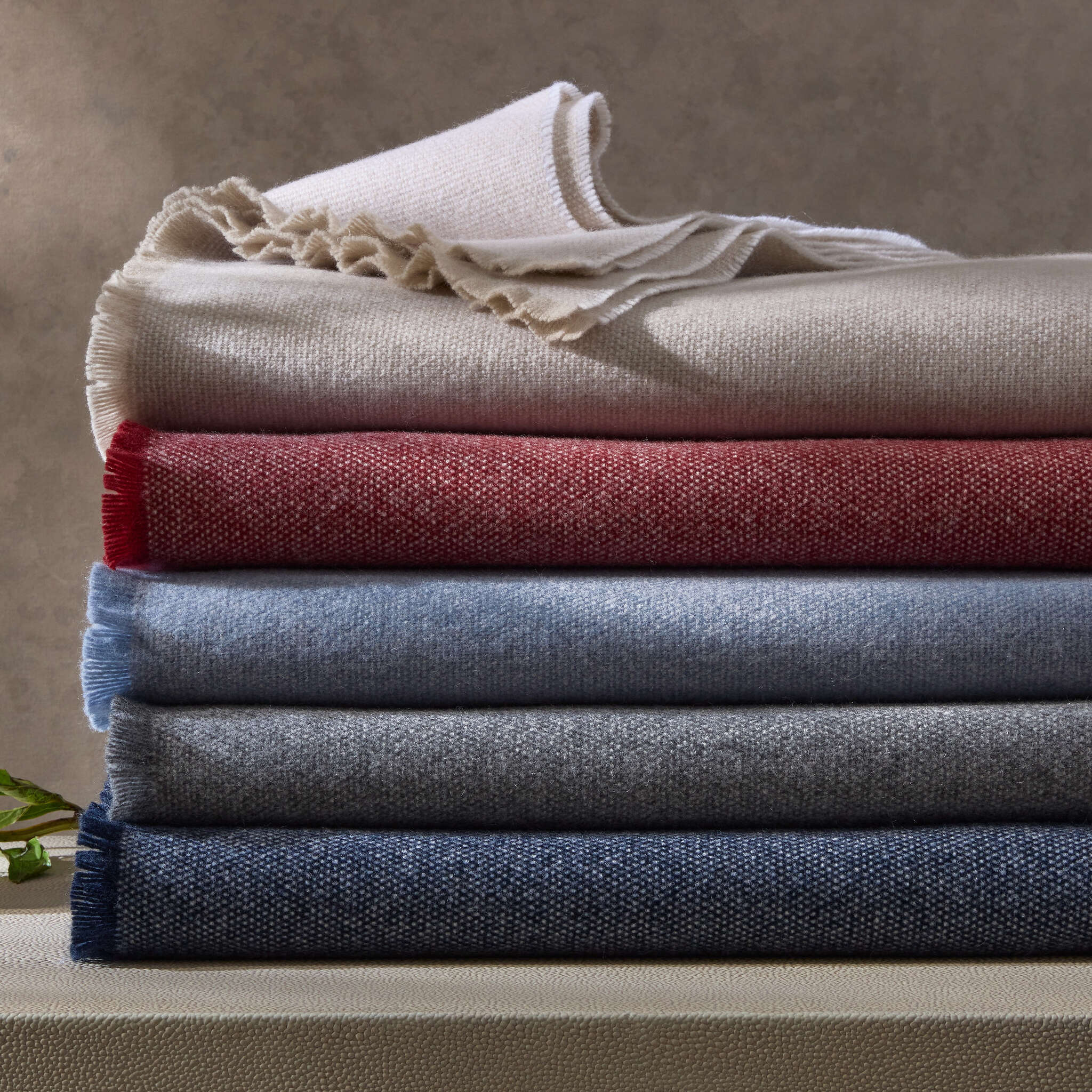 Cotton, when brushed, undergoes a transformation that gives it a plush, alluring texture. Our best-selling Celine throw blends soft colors with cream in a herringbone weave and is finished with a twisted fringe.