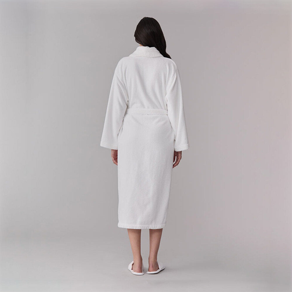 This spa-inspired robe is lined in pure white terry cloth for a super-plush and thirsty interior, while the exterior of the robe features a thermal waffle-weave texture, for the ultimate performance in warmth and style.