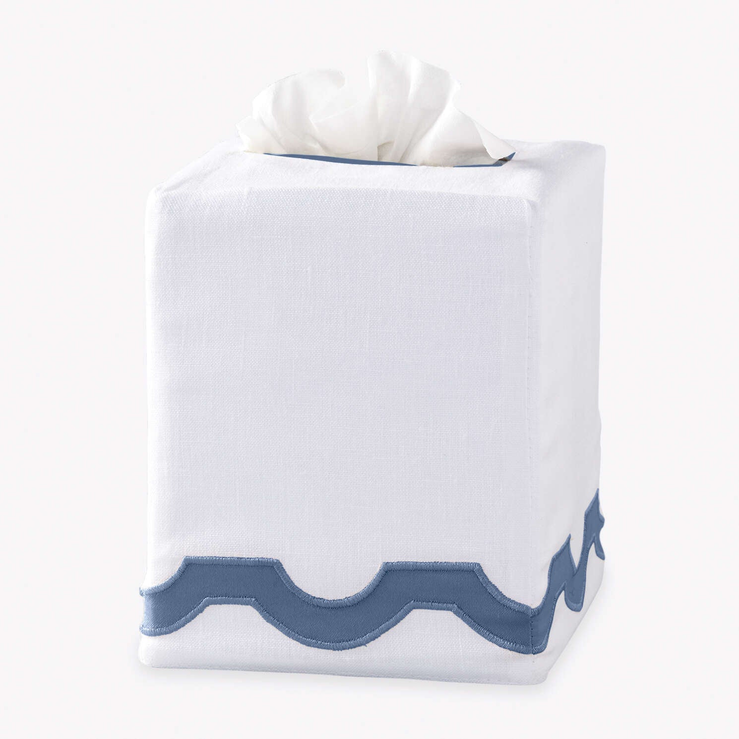 In a home where no detail goes unconsidered, our Chelsea tissue box covers coordinate seamlessly with the surrounding space. Available in your choice of eight pristine shades, these 100 percent linen covers are framed in white piping for a preppy pop of color.